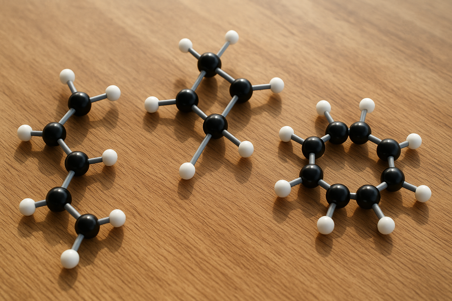 • Egyenes szénlánc (lineáris): A szénatomok egymáshoz kapcsolódva egy láncot alkotnak, elágazások nélkül.